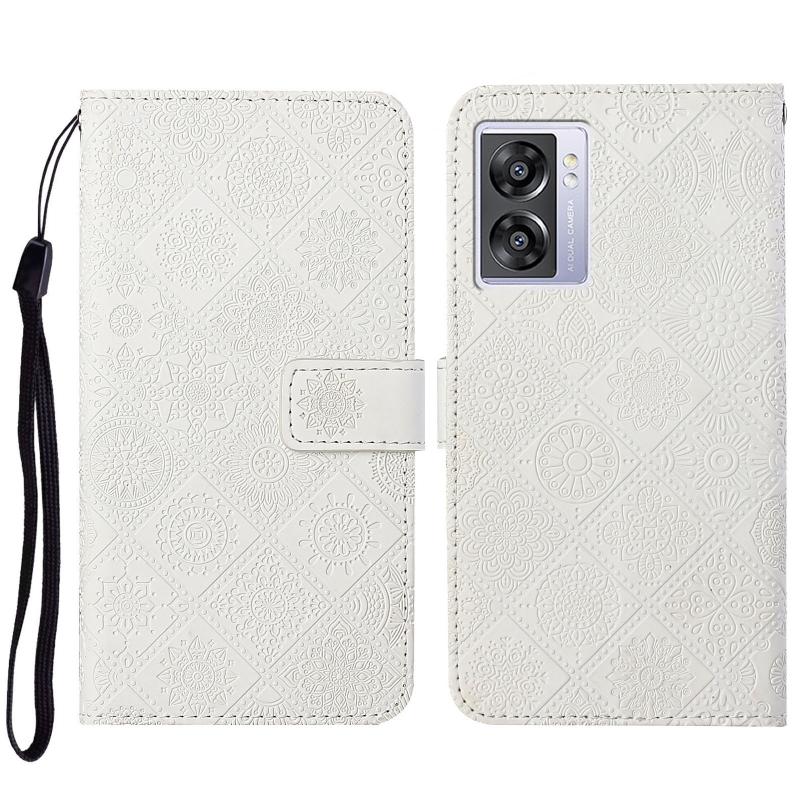 Θήκη τηλεφώνου από δέρμα με ανάγλυφο εθνοτικό σχέδιο για OPPO A57 2022 (Μωβ)