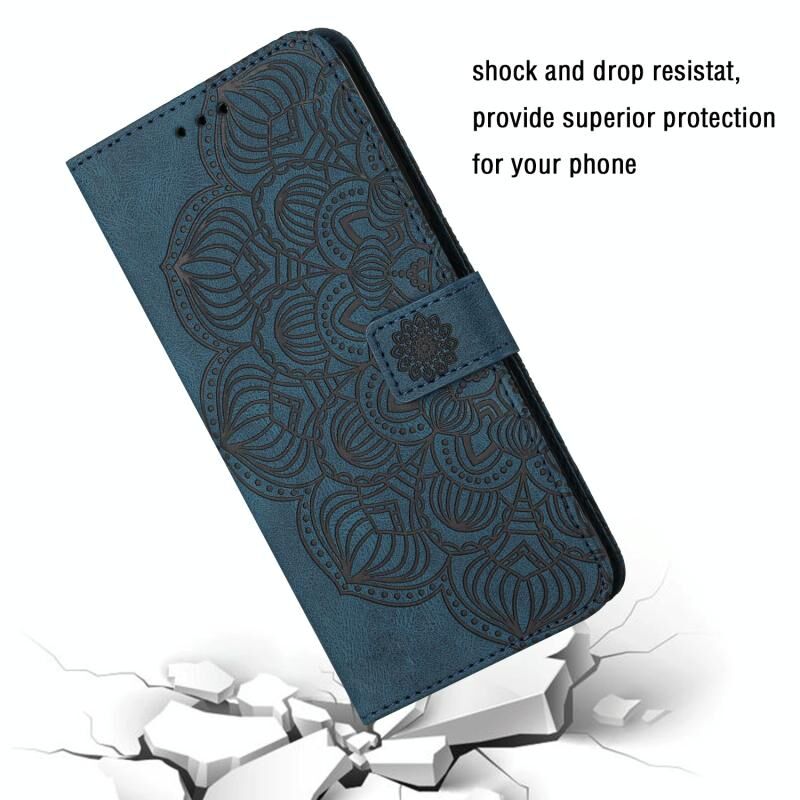 Θήκη τηλεφώνου από δέρμα με ανάγλυφο Mandala για OPPO A57 2022 (Μπλε)