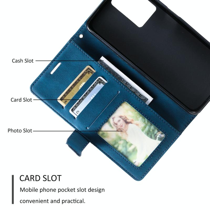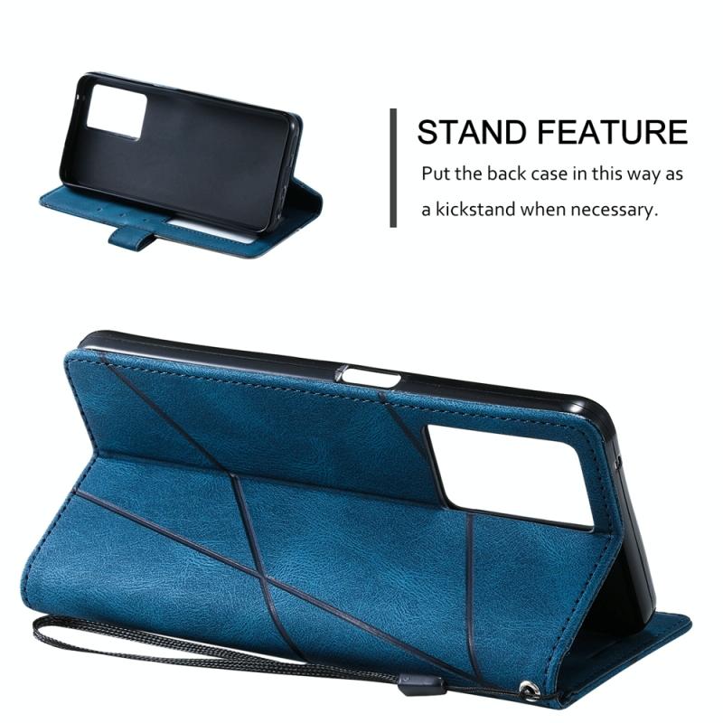 Θήκη τηλεφώνου από δέρμα με αίσθηση αφής και ραφές για OPPO A57 2022 (Μπλε)