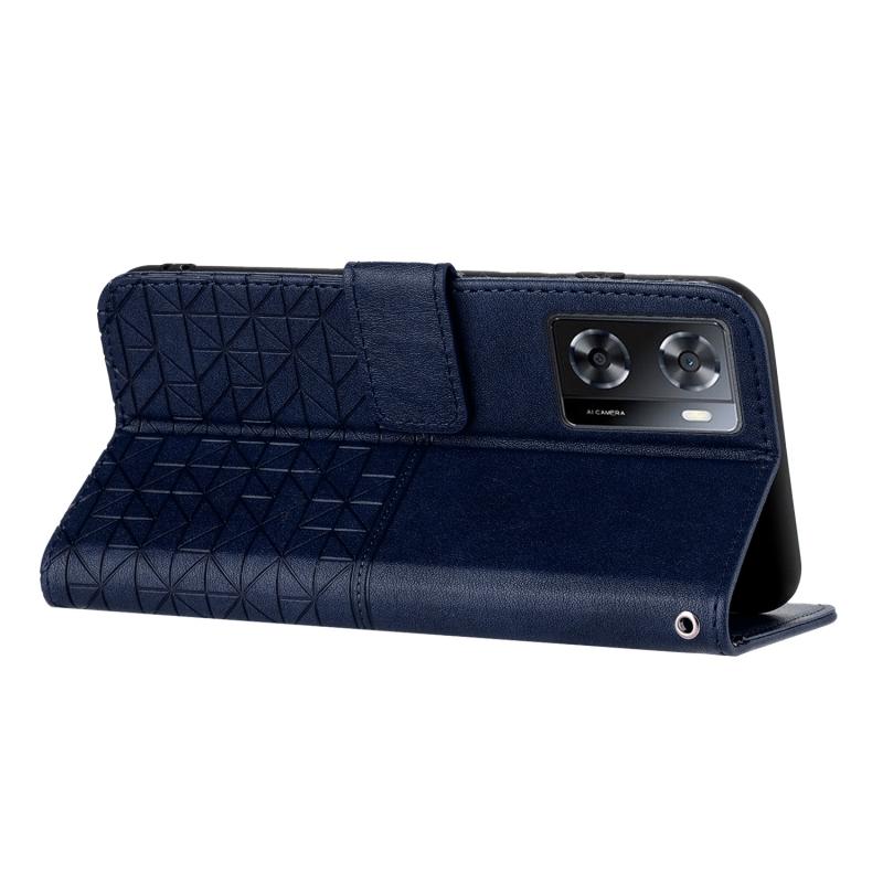 For OPPO A57 4G 2022 Rhombic Texture Leather Phone Case with Lanyard(Blue)