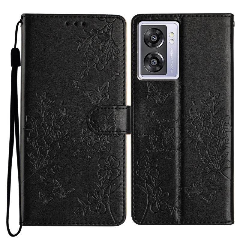 Θήκη τηλεφώνου από δέρμα με πεταλούδες και λουλούδια για OPPO A57 4G / 5G / A77 5G (Χρυσό)