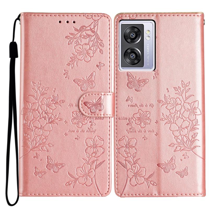 For OPPO A57 4G / 5G / A77 5G Butterflies and Flowers Leather Phone Case(Rose Gold)