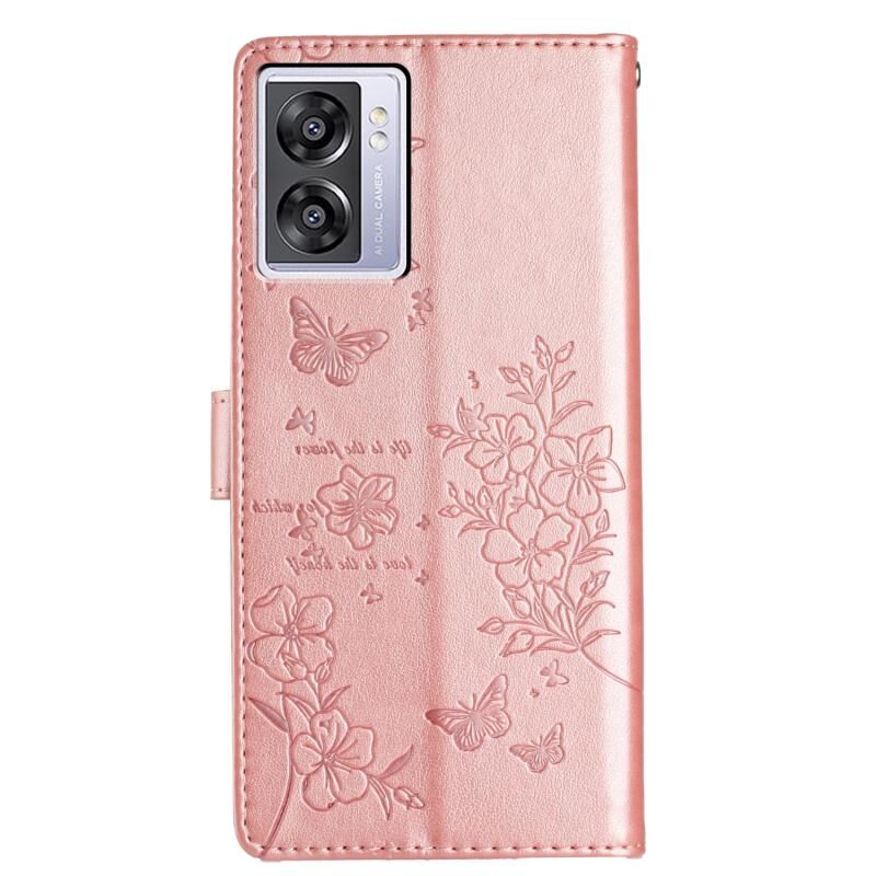 Θήκη τηλεφώνου από δέρμα με πεταλούδες και λουλούδια για OPPO A57 4G / 5G / A77 5G (Χρυσό)