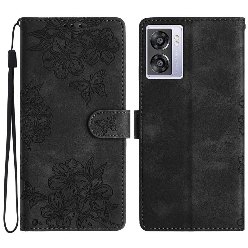 Θήκη τηλεφώνου OPPO A57 4G / A57 5G / A77 5G με ανάγλυφο PU υφή Cherry Blossom Butterfly (Κόκκινο)