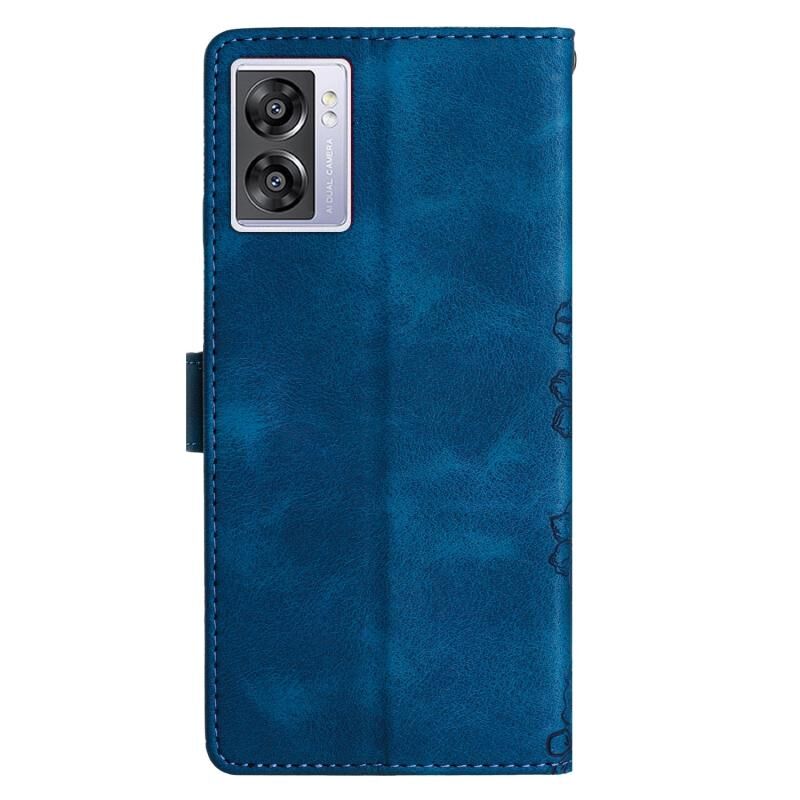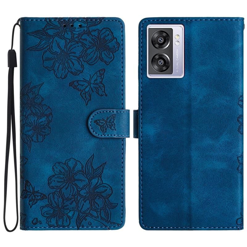 Θήκη τηλεφώνου OPPO A57 4G / A57 5G / A77 5G με ανάγλυφο PU υφή Cherry Blossom Butterfly (Κόκκινο)