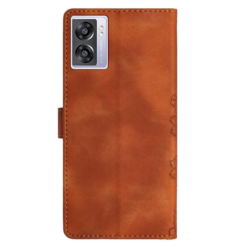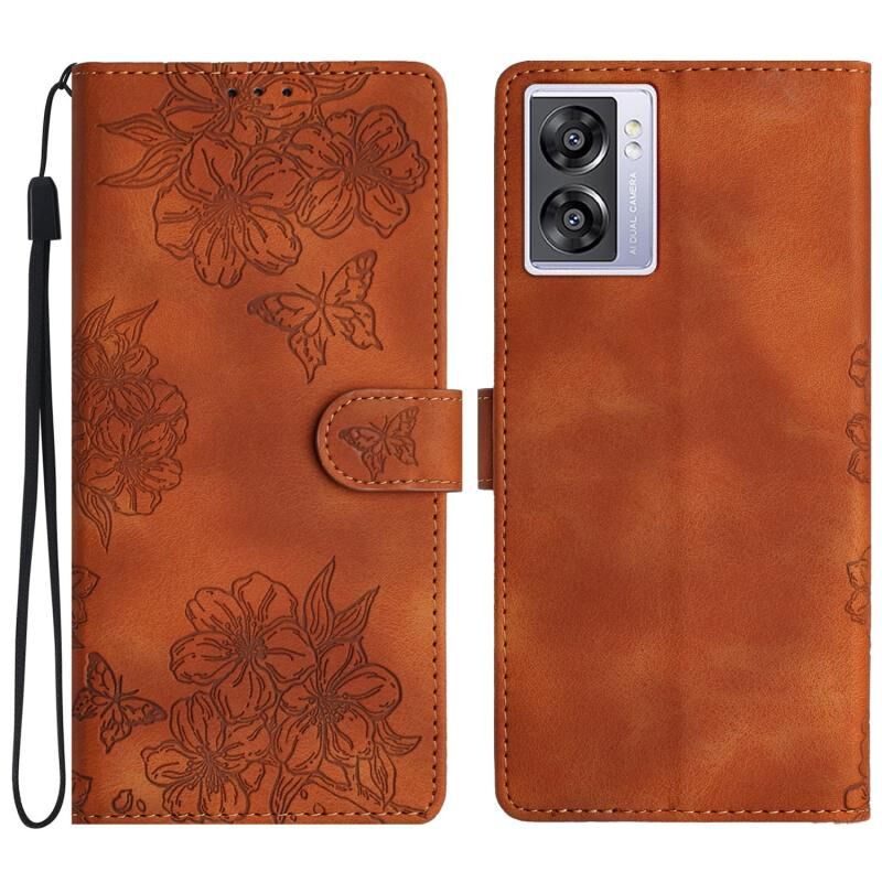 Θήκη τηλεφώνου OPPO A57 4G / A57 5G / A77 5G με ανάγλυφο PU υφή Cherry Blossom Butterfly (Κόκκινο)