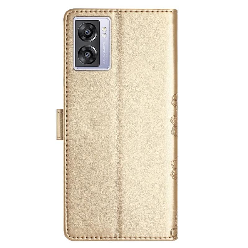 Θήκη τηλεφώνου OPPO A57 4G / A57 5G / A77 5G με ανάγλυφο PU υφή Cherry Blossom Butterfly (Κόκκινο)
