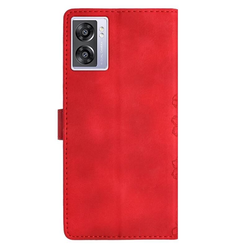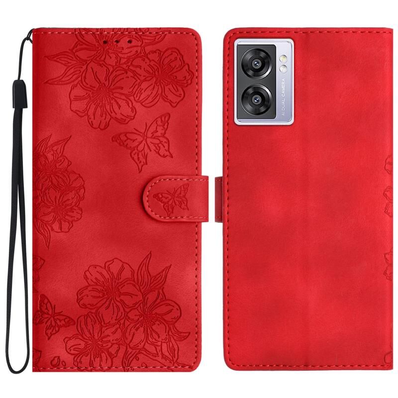 Θήκη τηλεφώνου OPPO A57 4G / A57 5G / A77 5G με ανάγλυφο PU υφή Cherry Blossom Butterfly (Κόκκινο)