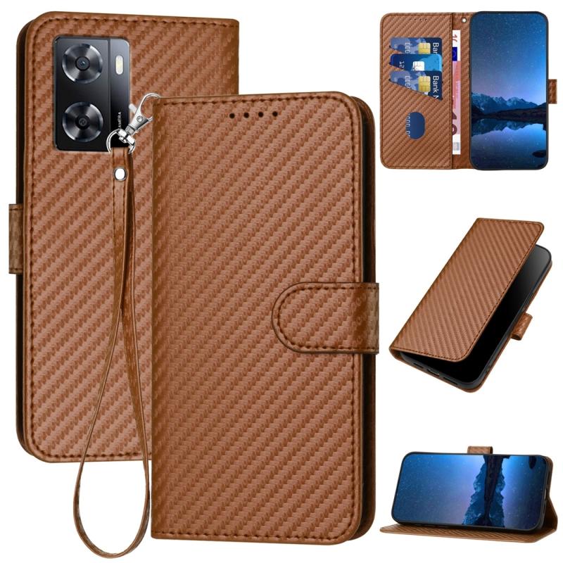Θήκη τηλεφώνου από δέρμα με αγκράφα από ανθρακονήματα και λουρί για OPPO A57 4G/A57e 4G/A57s 4G/A77 4G YX0070 (Καφέ)