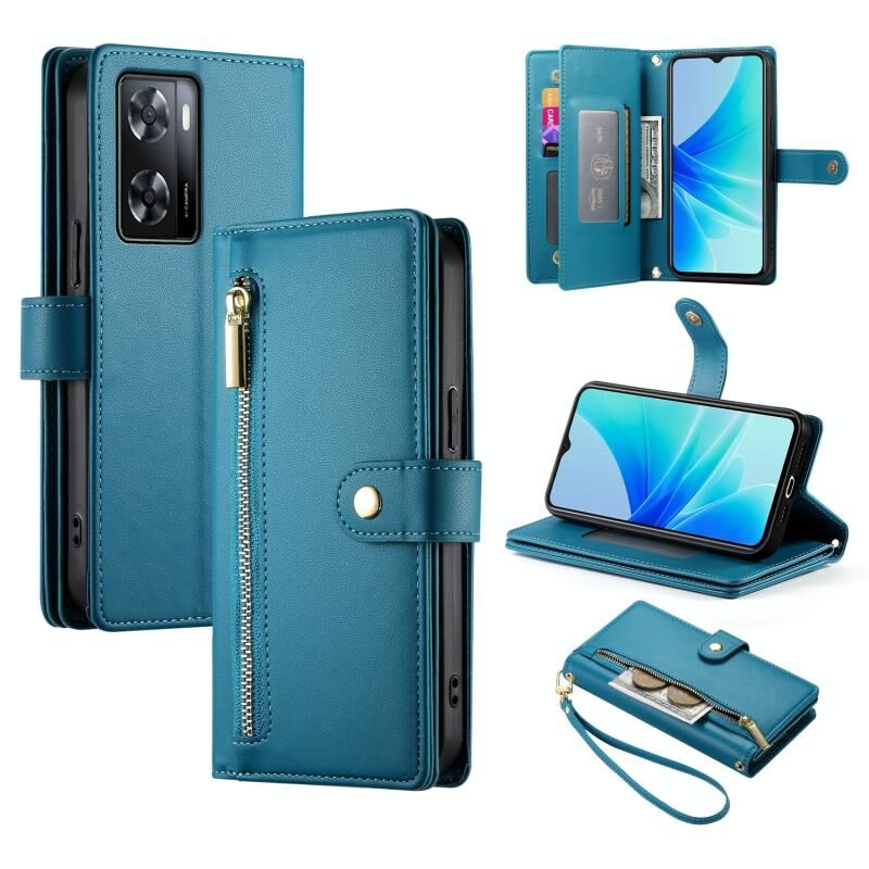 Για OPPO A57 4G / A77 4G / A57s 4G / A77s 4G Nine Card-slot φερμουάρ τσάντα πορτοφόλι δερμάτινη θήκη τηλεφώνου (Μπλε)