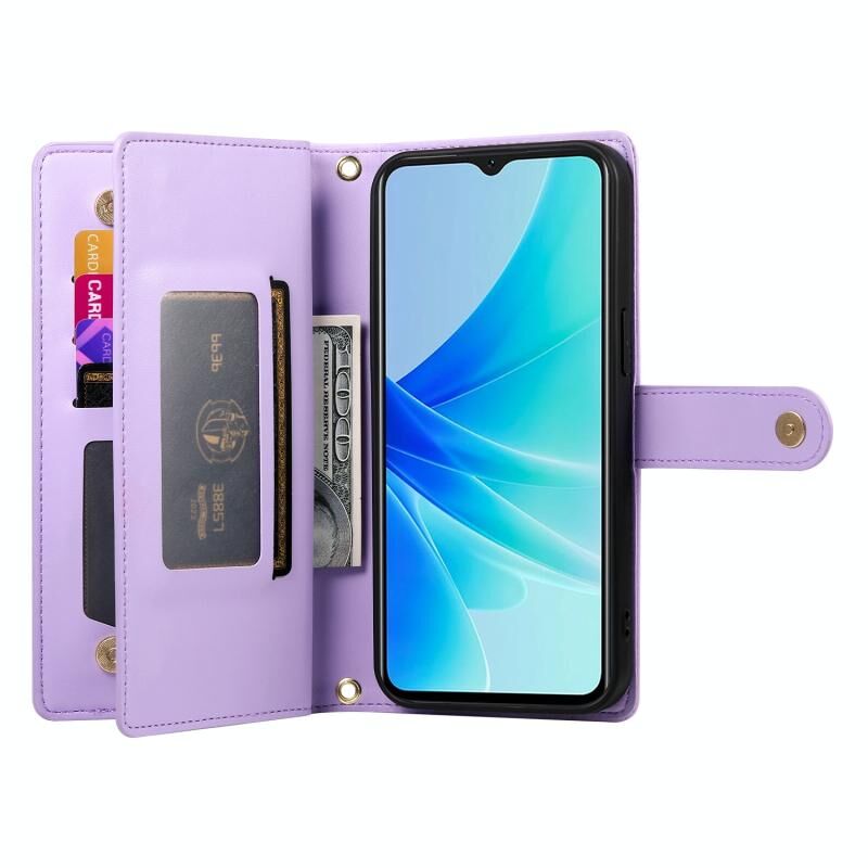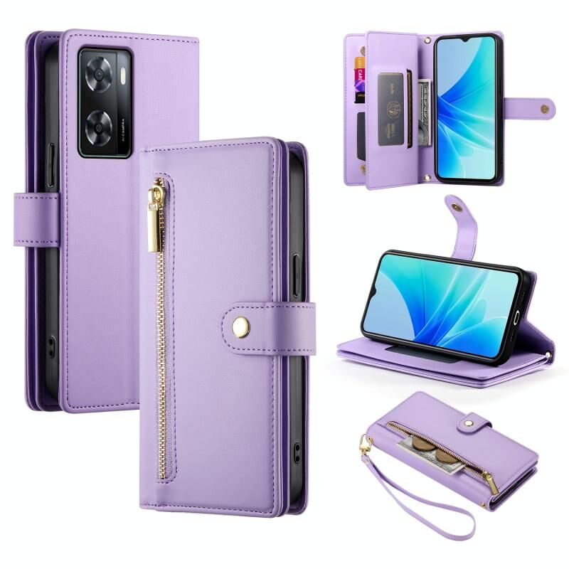 Για OPPO A57 4G / A77 4G / A57s 4G / A77s 4G Nine Card-slot φερμουάρ τσάντα πορτοφόλι δερμάτινη θήκη τηλεφώνου (Μωβ)