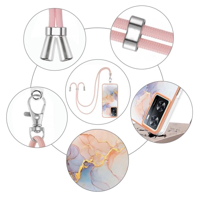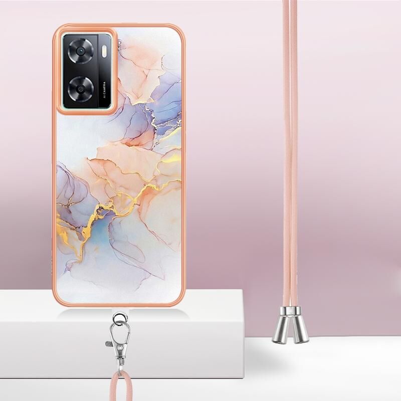 Θήκη τηλεφώνου TPU με ηλεκτρολυτική επιμετάλλωση IMD και λουρί για OPPO A57 4G/A77 5G Ταϊβάν/K10 5G Global (Λευκό Μάρμαρο)