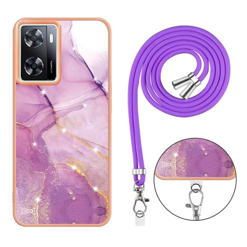 Θήκη τηλεφώνου με κορδόνι, με ηλεκτρολυτική μαρμάρινη επένδυση IMD διπλής όψης για OPPO A57 4G/A77 5G Ταϊβάν/K10 5G Global (Μωβ 001)
