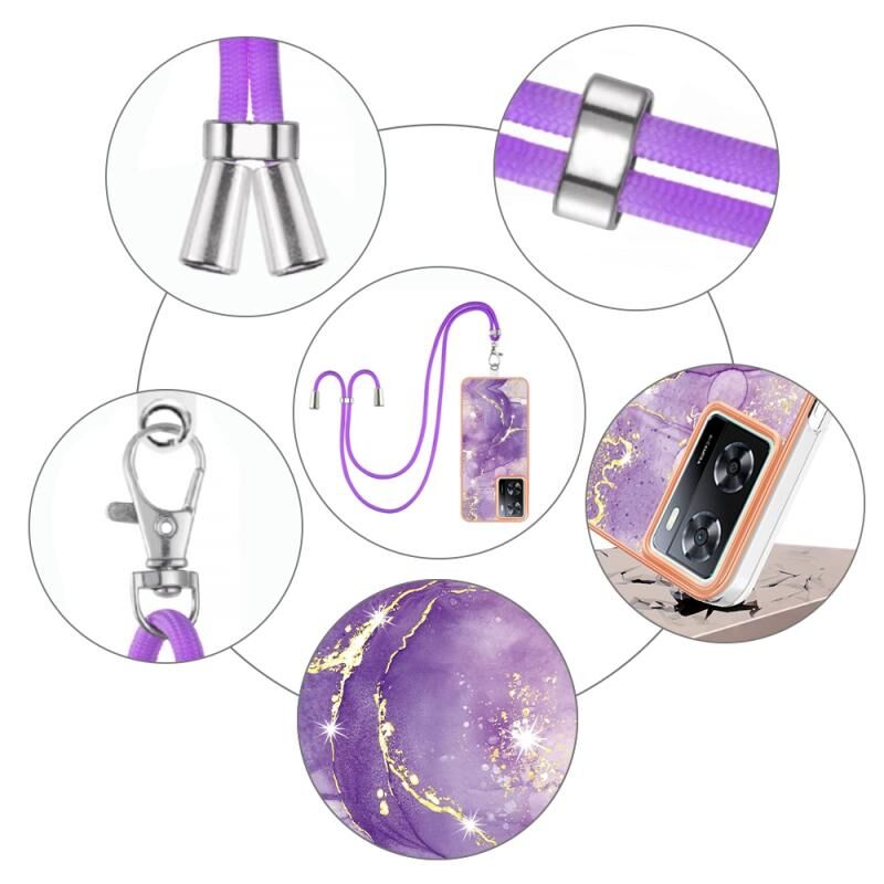 Θήκη τηλεφώνου με κορδόνι, με ηλεκτρολυτική μαρμάρινη επένδυση IMD διπλής όψης για OPPO A57 4G/A77 5G Ταϊβάν/K10 5G Global (Μωβ 001)