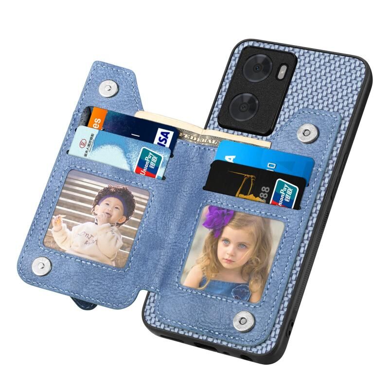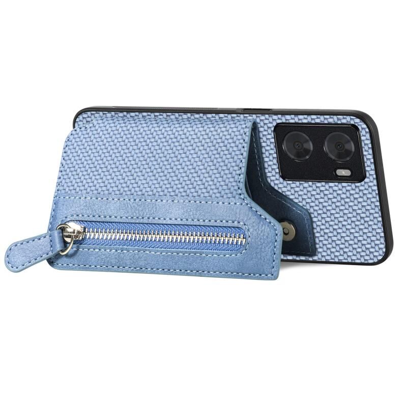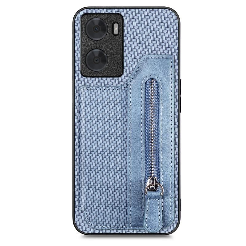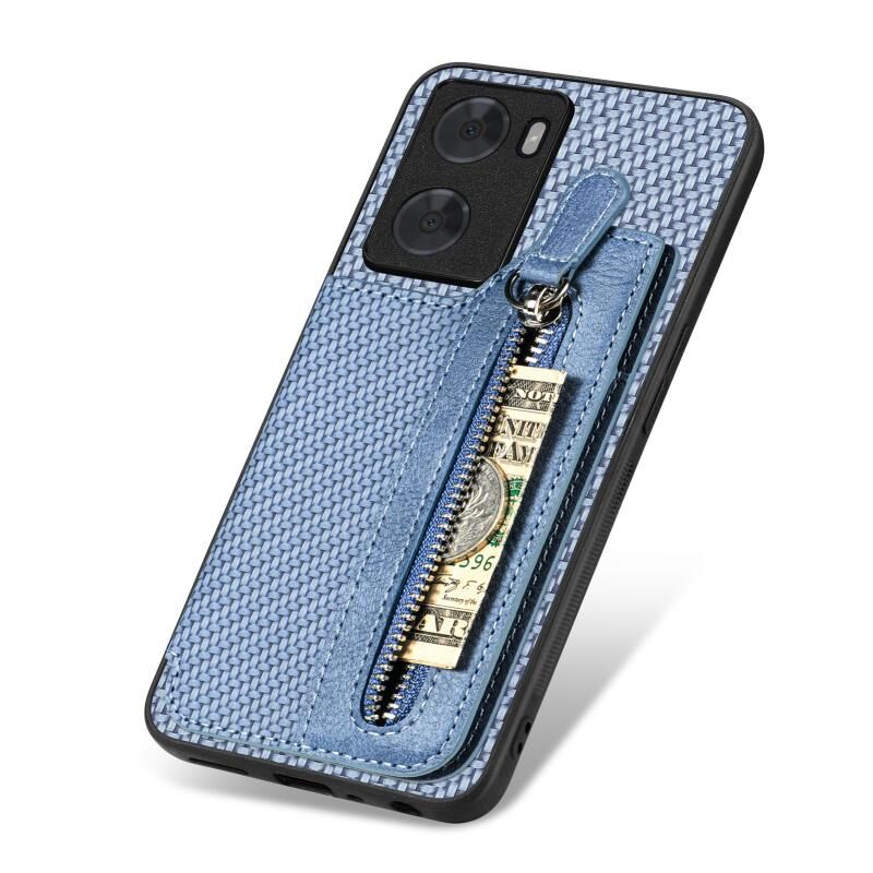 Για OPPO A57 4G Carbon Fiber Flip φερμουάρ πορτοφόλι τηλέφωνο υπόθεση (Μπλε)