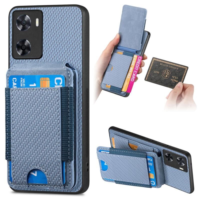 Θήκη τηλεφώνου για OPPO A57 4G από ανθρακονήματα, κάθετη, τύπου πορτοφολιού με βάση (Μπλε)