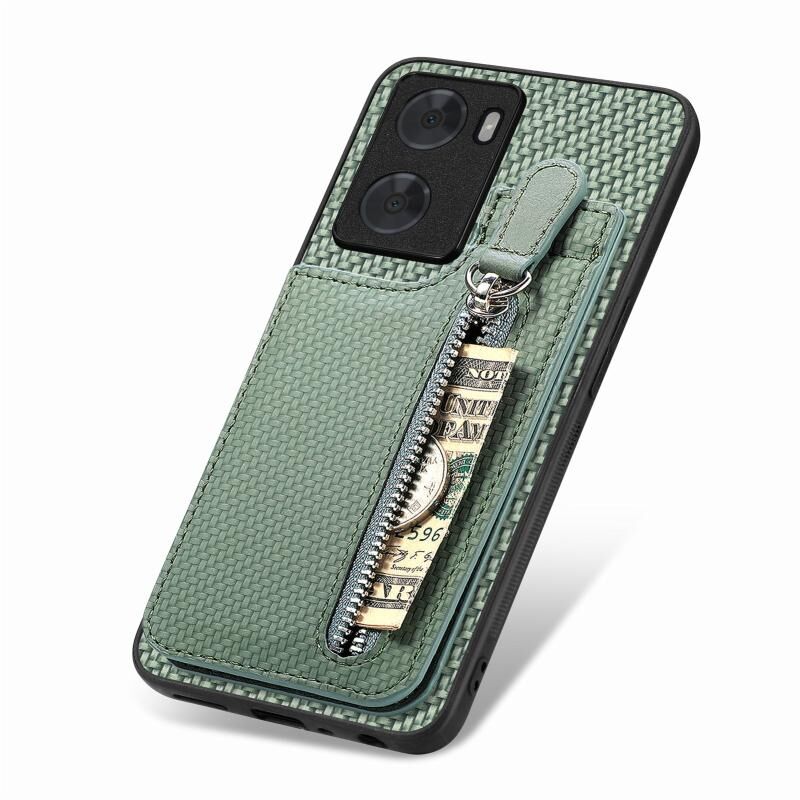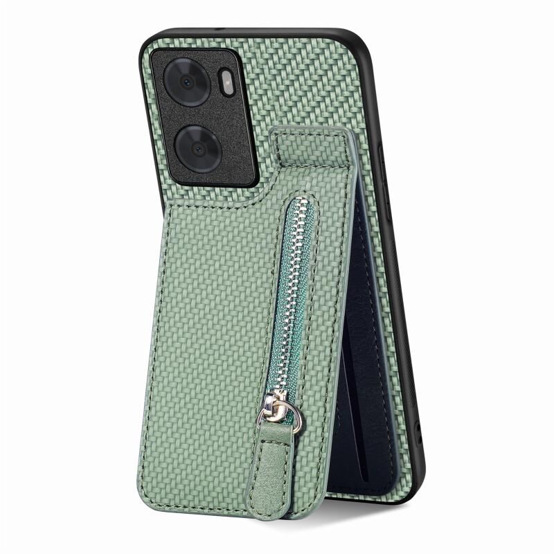 Για OPPO A57 4G Carbon Fiber Κάθετη Flip φερμουάρ τηλέφωνο υπόθεση (πράσινο)