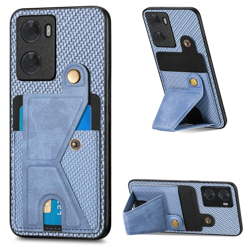 Για OPPO A57 4G Carbon Fiber πορτοφόλι Flip κάρτα κάτοχος τηλέφωνο υπόθεση (μπλε)