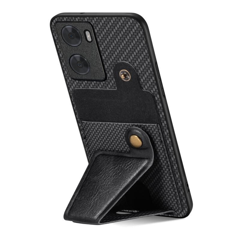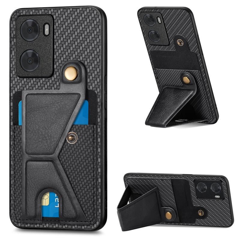 Για OPPO A57 4G Carbon Fiber πορτοφόλι Flip κάρτα K-διαμορφωμένο κάτοχος τηλέφωνο υπόθεση (Μαύρο)