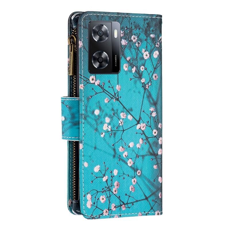 Θήκη τηλεφώνου από δέρμα με φερμουάρ και πολύχρωμο σχέδιο για OPPO A57 4G (Λουλούδι Δαμασκηνιάς)