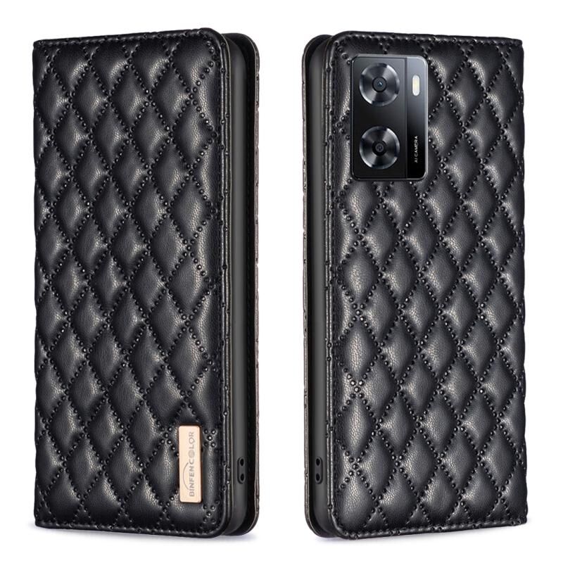 Θήκη τηλεφώνου OPPO A57 4G με μαγνητικό δέρμα και σχέδιο διαμαντιού (Μαύρο)