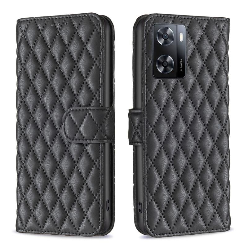 Για OPPO A57 4G Diamond Lattice πορτοφόλι δέρμα Flip τηλέφωνο υπόθεση (μαύρο)