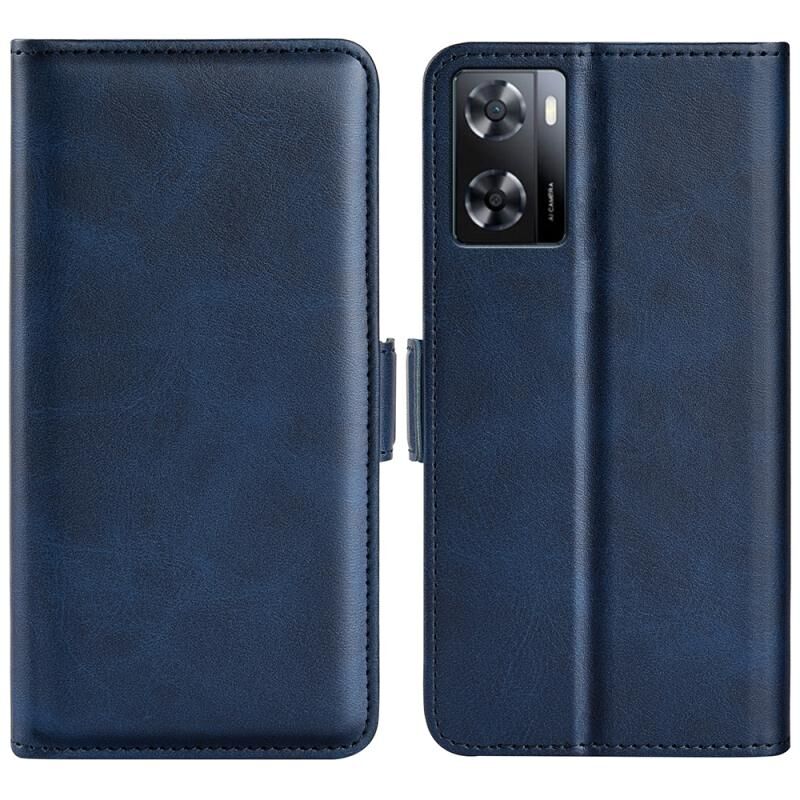 Για OPPO A57 4G διπλής όψης μαγνητική πόρπη οριζόντια Flip δέρμα τηλέφωνο υπόθεση (σκούρο μπλε)
