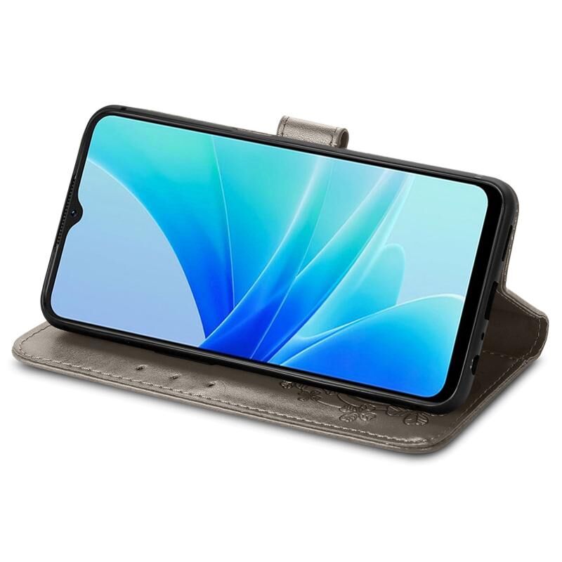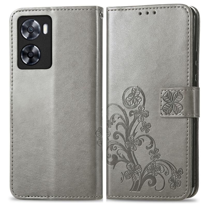 Για OPPO A57 4G τεσσάρων φύλλων κούμπωμα ανάγλυφο πόρπη δερμάτινη θήκη τηλεφώνου (γκρι)