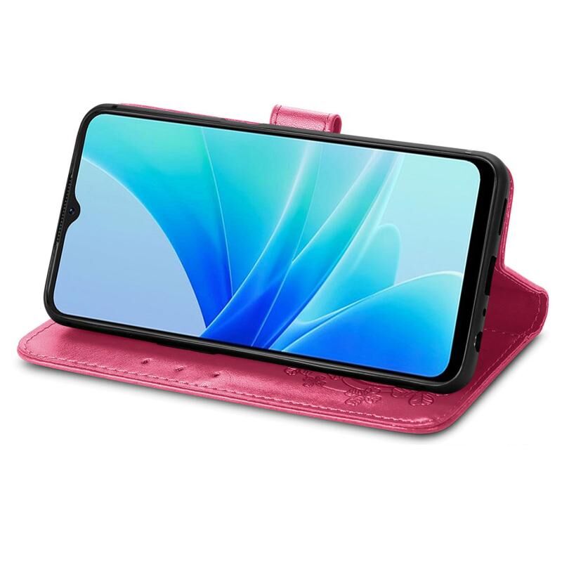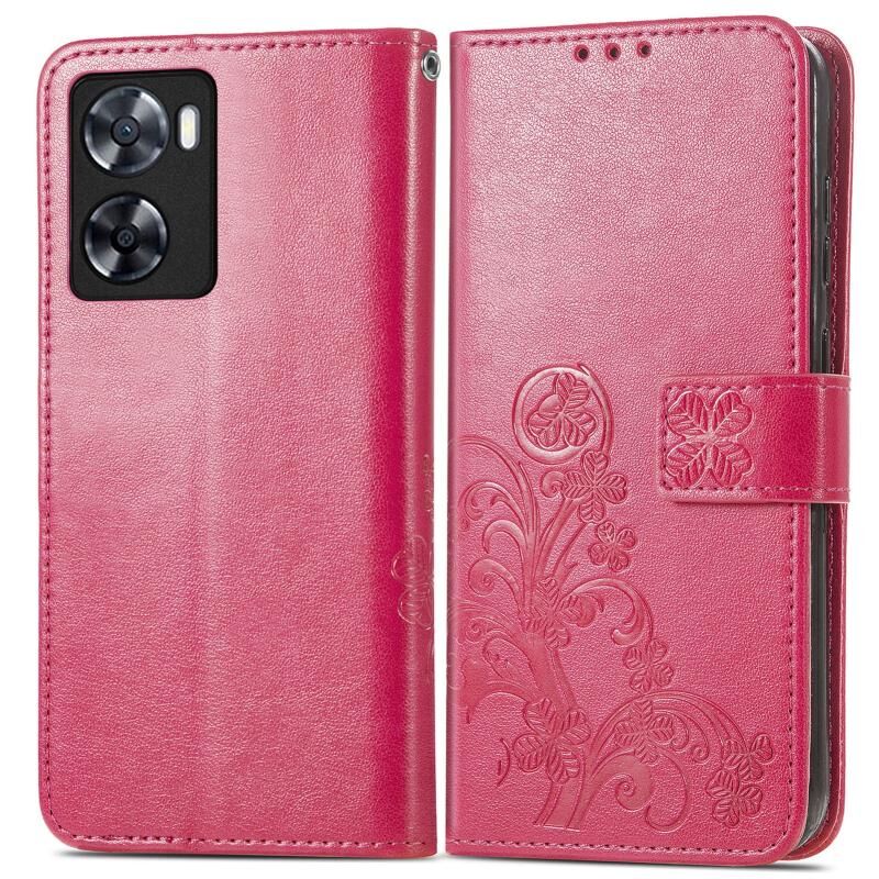Για OPPO A57 4G τεσσάρων φύλλων κούμπωμα ανάγλυφο πόρπη δερμάτινη θήκη τηλεφώνου (Magenta)