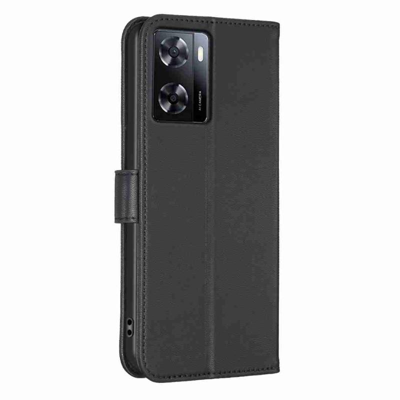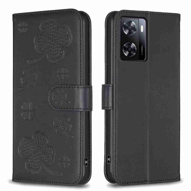 For OPPO A57 4G Four-leaf Embossed Leather Phone Case(Black)
