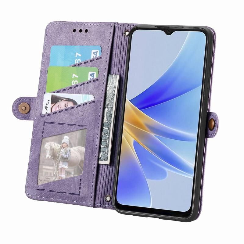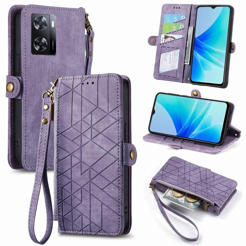 Για OPPO A57 4G γεωμετρική φερμουάρ πορτοφόλι πλευρά πόρπη δερμάτινη θήκη τηλεφώνου (μωβ)