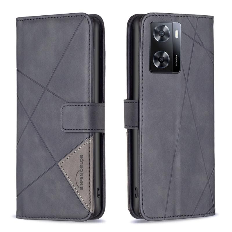 Για OPPO A57 4G Μαγνητική πόρπη Rhombus Υφή δερμάτινη θήκη τηλεφώνου (Μαύρο)