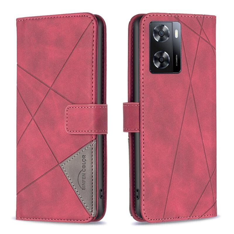 Για OPPO A57 4G Μαγνητική πόρπη Rhombus Υφή δερμάτινη θήκη τηλεφώνου (Κόκκινο)