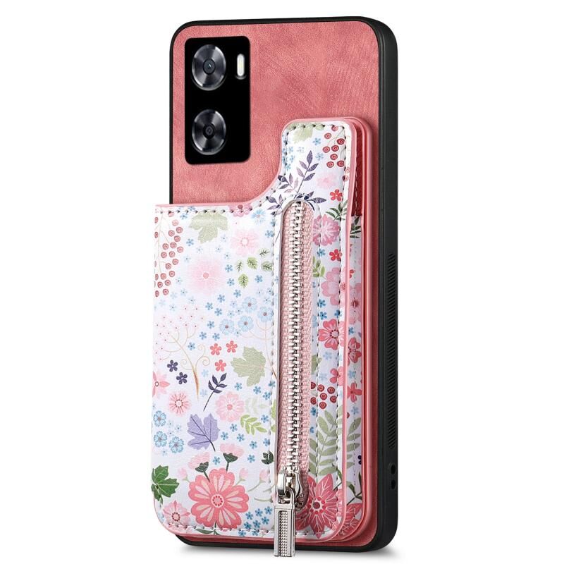 Για OPPO A57 4G Ρετρό ζωγραφισμένο φερμουάρ πορτοφόλι πίσω τηλέφωνο υπόθεση (ροζ)