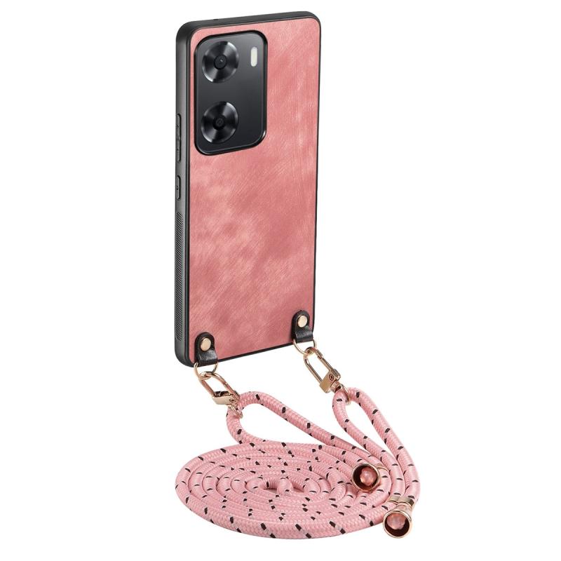 Θήκη κινητού τηλεφώνου για OPPO A57 4G, με δερμάτινη πλάτη PC σε vintage στυλ και λουρί χιαστί (Καφέ)