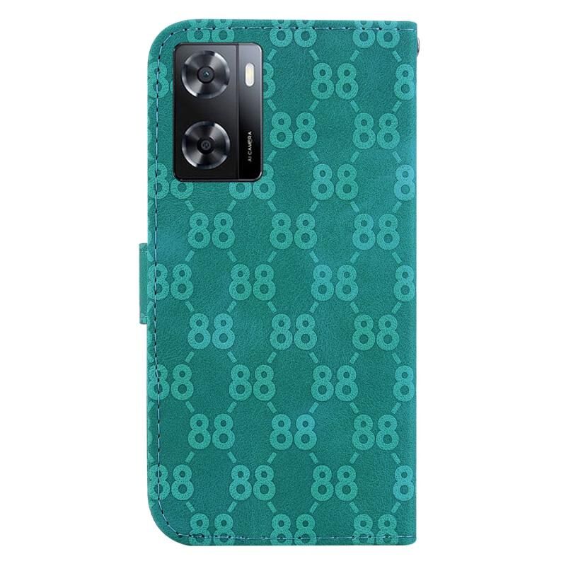 Θήκη τηλεφώνου από δέρμα με ανάγλυφο διπλό σχέδιο σε σχήμα 8 για OPPO A57 5G/A57 4G/A77 5G/K10 5G (Πράσινο)
