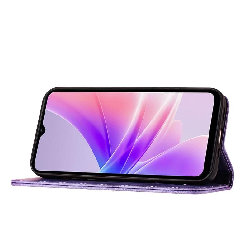 Θήκη τηλεφώνου από δέρμα με ανάγλυφο σχέδιο πεταλούδας και γάτας για OPPO A57 5G / A77 5G (Μωβ)