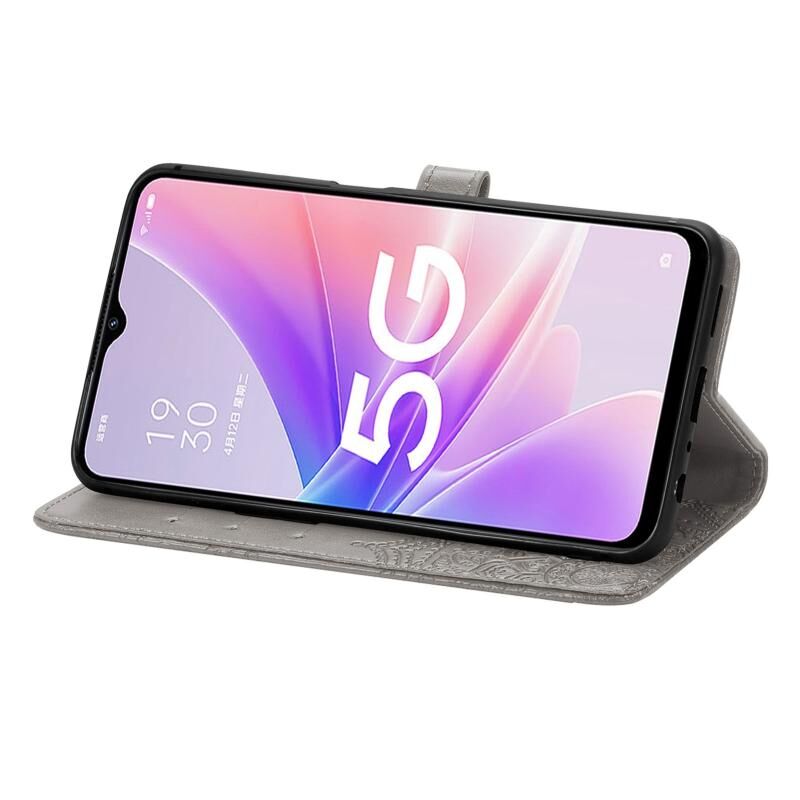 Για OPPO A57 5G Mandala λουλούδι ανάγλυφο δερμάτινη θήκη τηλεφώνου (Γκρι)