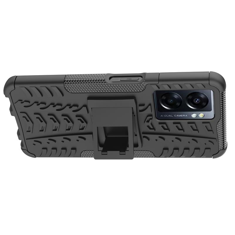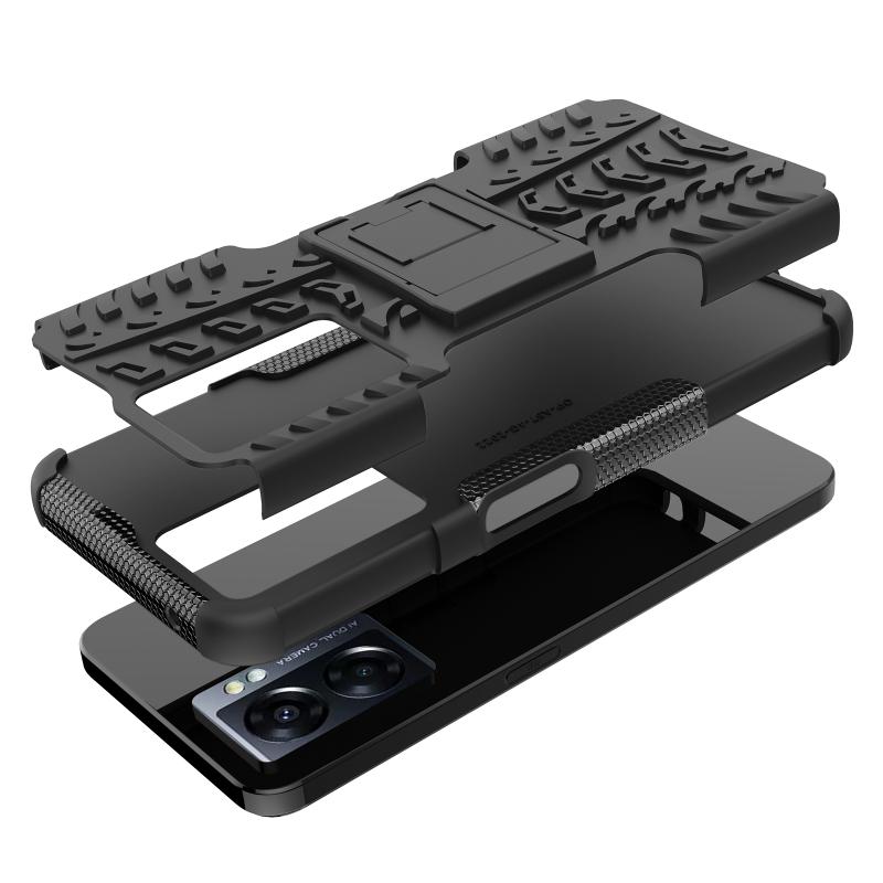 Θήκη κινητού τηλεφώνου για OPPO A57 5G / OnePlus Nord N300 με υφή ελαστικού + PC και βάση στήριξης (Μαύρο)