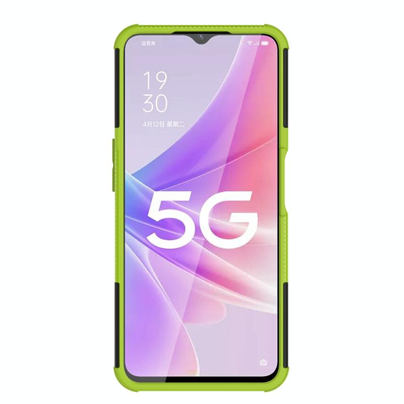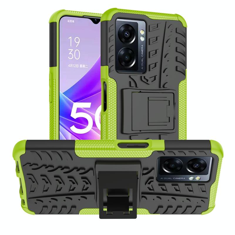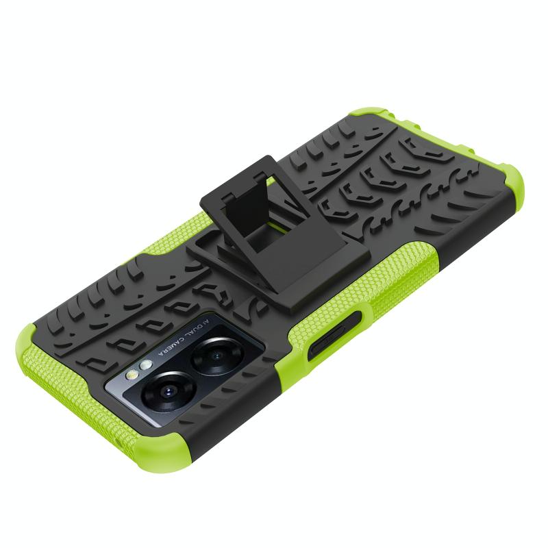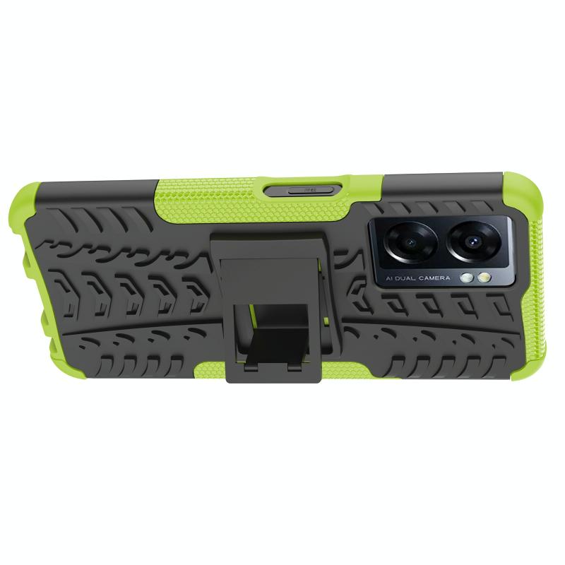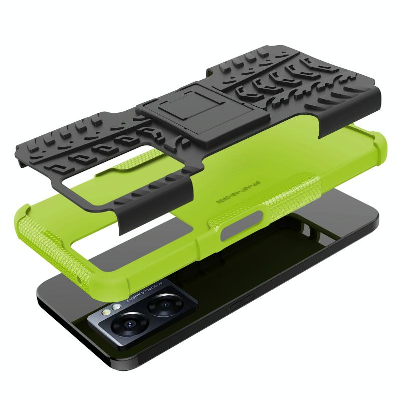 Θήκη κινητού τηλεφώνου για OPPO A57 5G / OnePlus Nord N300 με υφή ελαστικού + PC και βάση στήριξης (πράσινο)