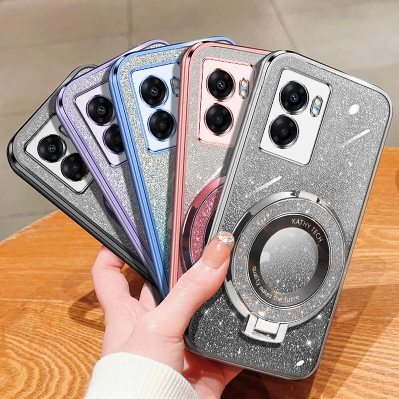 Θήκη τηλεφώνου TPU με στρογγυλό στήριγμα, επιμετάλλωση, διαβαθμισμένη λάμψη για OPPO A57 5G (Μπλε Σιέρρα)