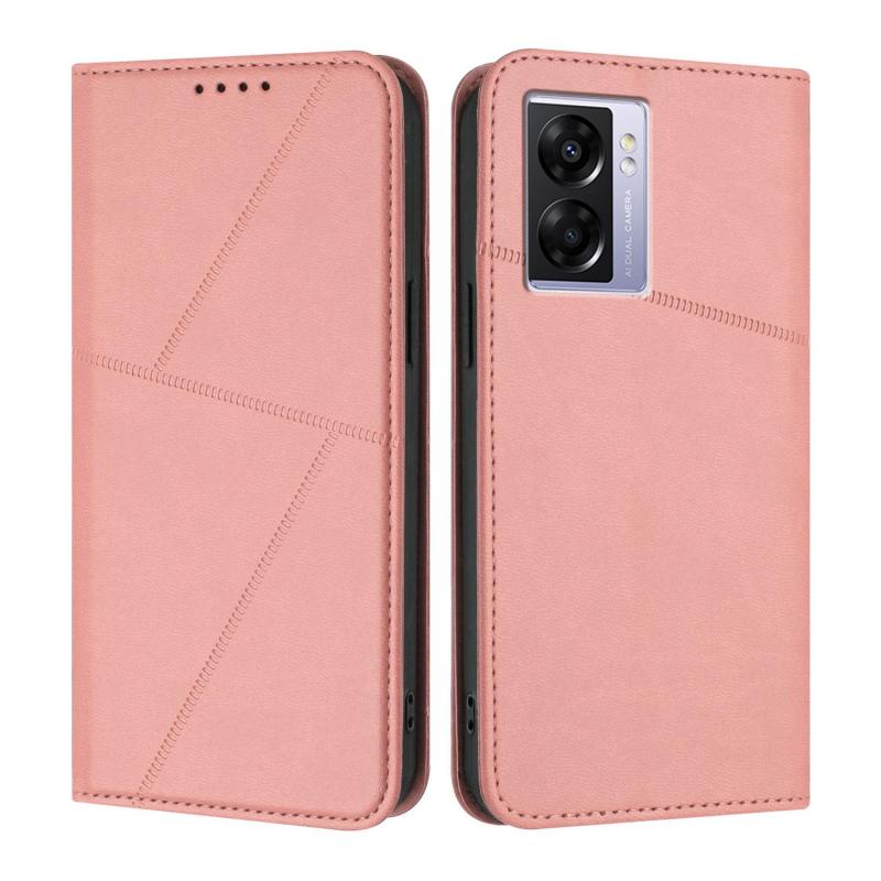 For OPPO A57 5G Strong Magnetic Frosted Flip Leather Phone Case(Pink)