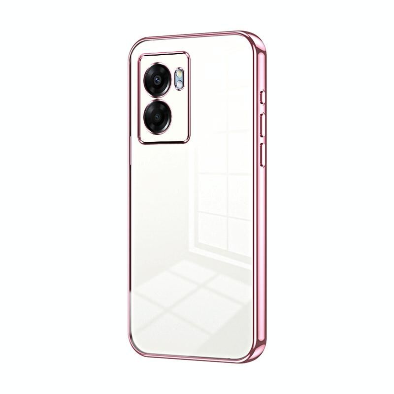 Για OPPO A57 5G Διαφανής επιμετάλλωση Fine Hole τηλέφωνο υπόθεση (ρόζ)