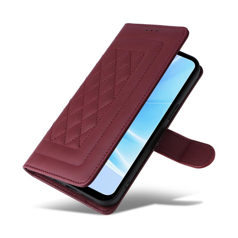 For OPPO A57 / A57s Diamond Lattice Leather Flip Phone Case(Wine Red)