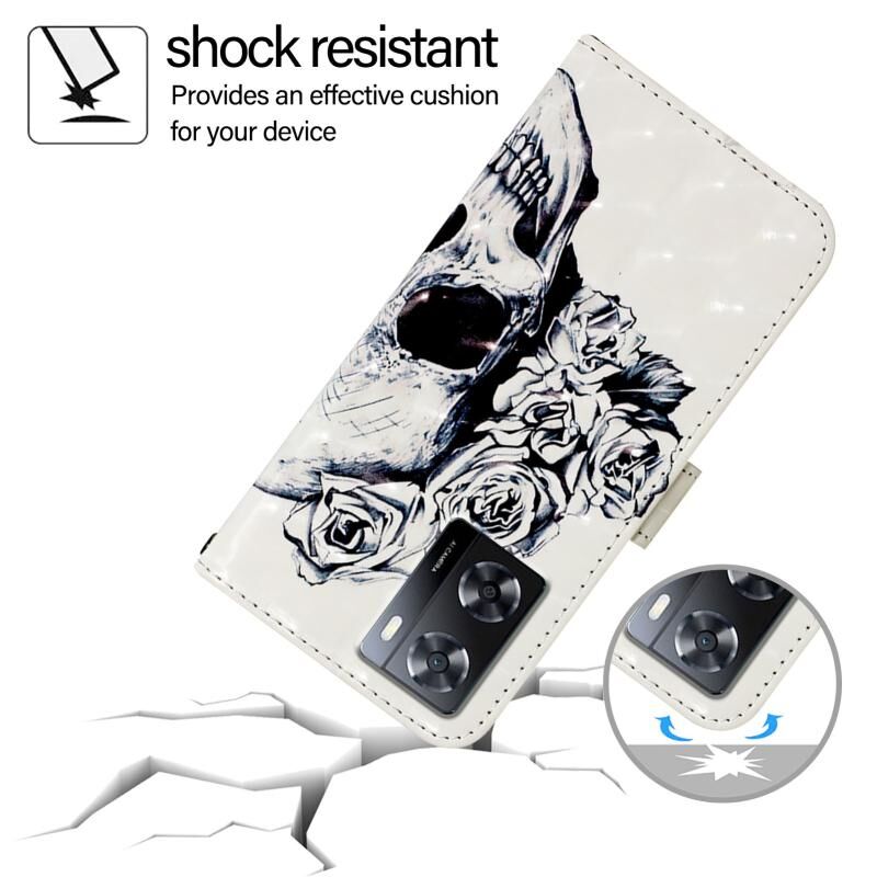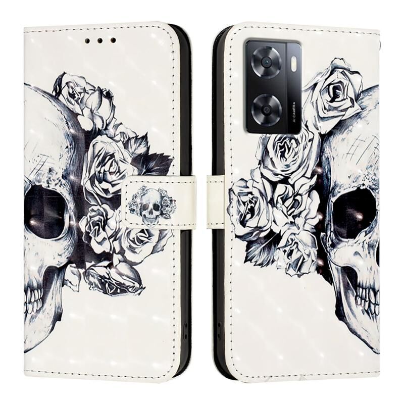 Θήκη τηλεφώνου από δέρμα με οριζόντιο άνοιγμα και τρισδιάστατη ζωγραφική για OPPO A57s 4G / A57e 4G / A77s 4G (Κρανίο)
