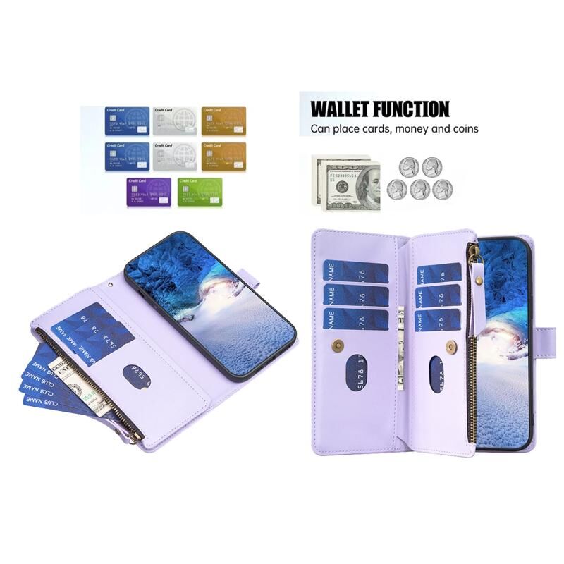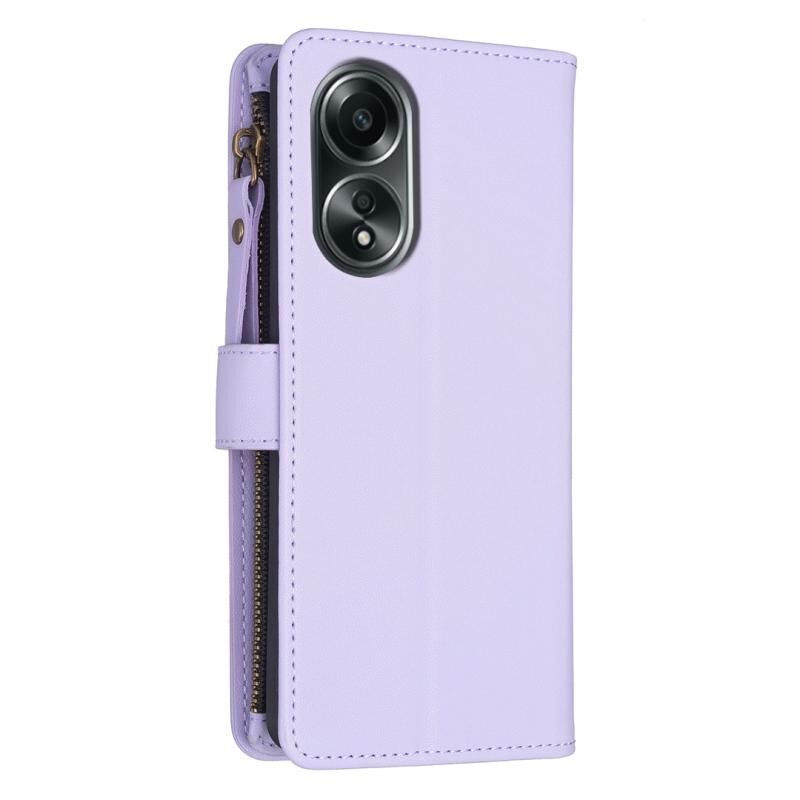 Για OPPO A58 4G 9 υποδοχές καρτών φερμουάρ πορτοφόλι δέρμα Flip υπόθεση τηλεφώνου (ανοιχτό μωβ)