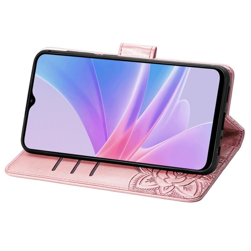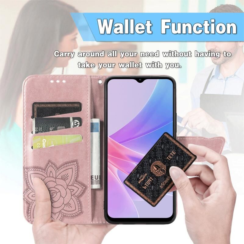 Θήκη τηλεφώνου από δέρμα με ανάγλυφο σχέδιο πεταλούδας και λουλουδιών για OPPO A58 4G (Μαύρο)