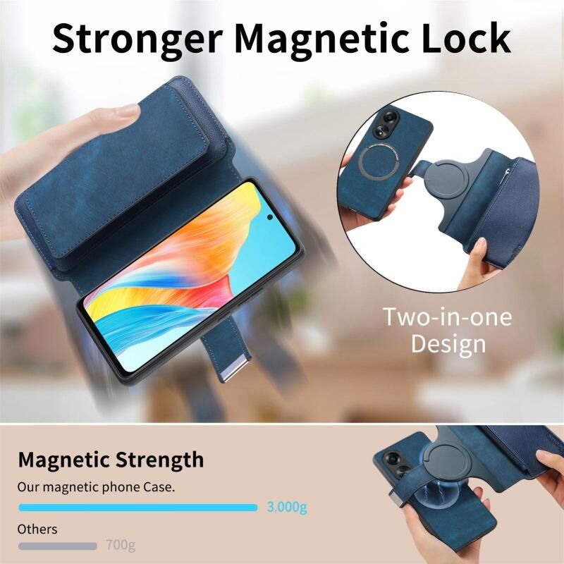 For OPPO A58 4G CaseNeo MagSafe RFID Anti-theft Zipper Wallet Retro Leather Phone Case(Blue) (CaseNeo)