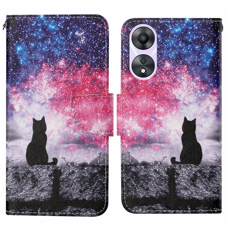 Θήκη τηλεφώνου από δέρμα με πολύχρωμο σχέδιο (Γάτα στον Αστρικό Ουρανό) για OPPO A58 4G