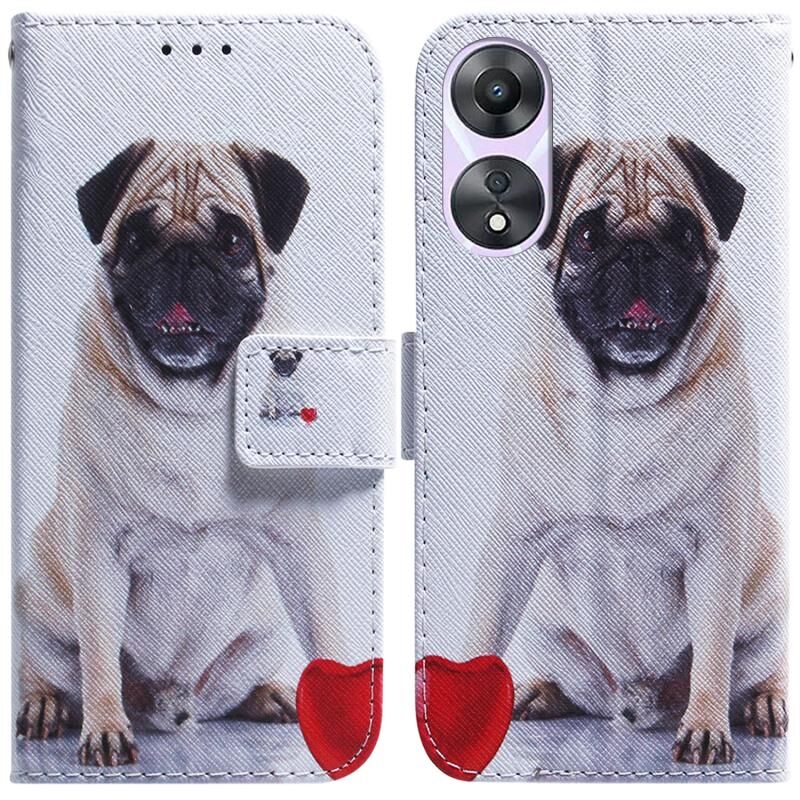 Θήκη τηλεφώνου από δέρμα με σχέδιο (Pug) για OPPO A58 4G, πολύχρωμη, τύπου flip. (Κόκκινο)